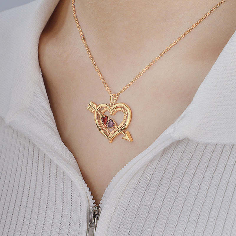 Collier Personnalisé Avec Pierre De Naissance, Flèche De Cupidon, Cœur, Collier À Graver Pour Elle