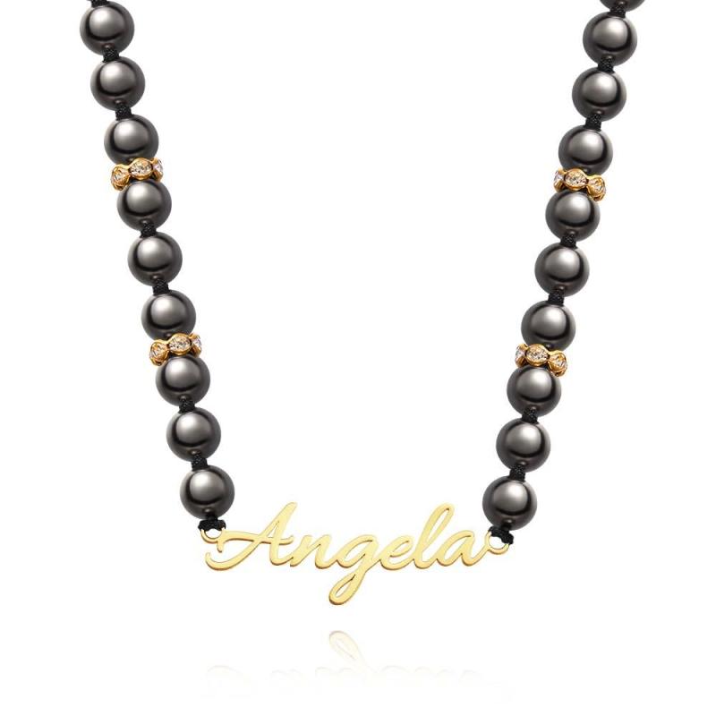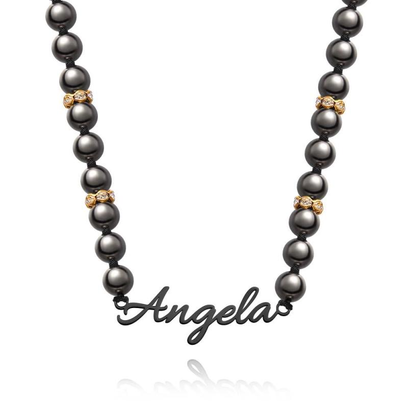 Collier De Perles Noires Avec Nom Personnalisé, Bijoux Simples, Cadeaux Pour Elle