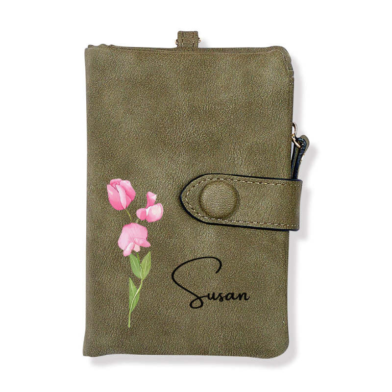 Nom Personnalisé Coloré Naissance Fleur Portefeuille Porte-carte Cadeau D'anniversaire Pour Elle