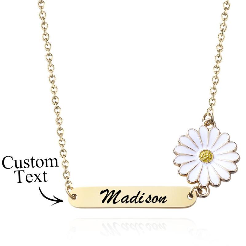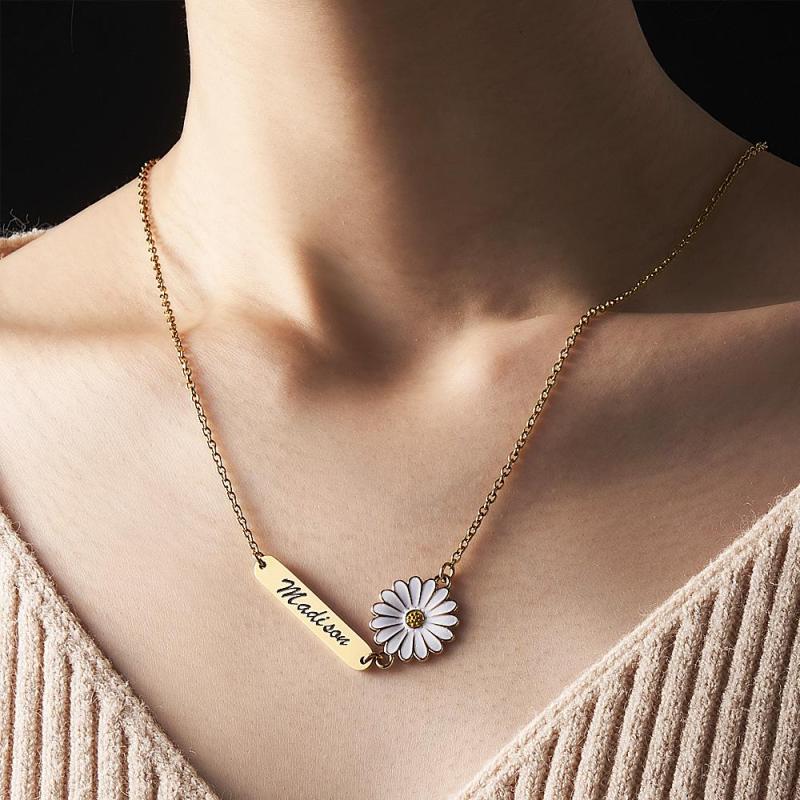 Nom Personnalisé Collier Marguerite Or Plaque Signalétique Charme Cadeau Unique Pour Elle