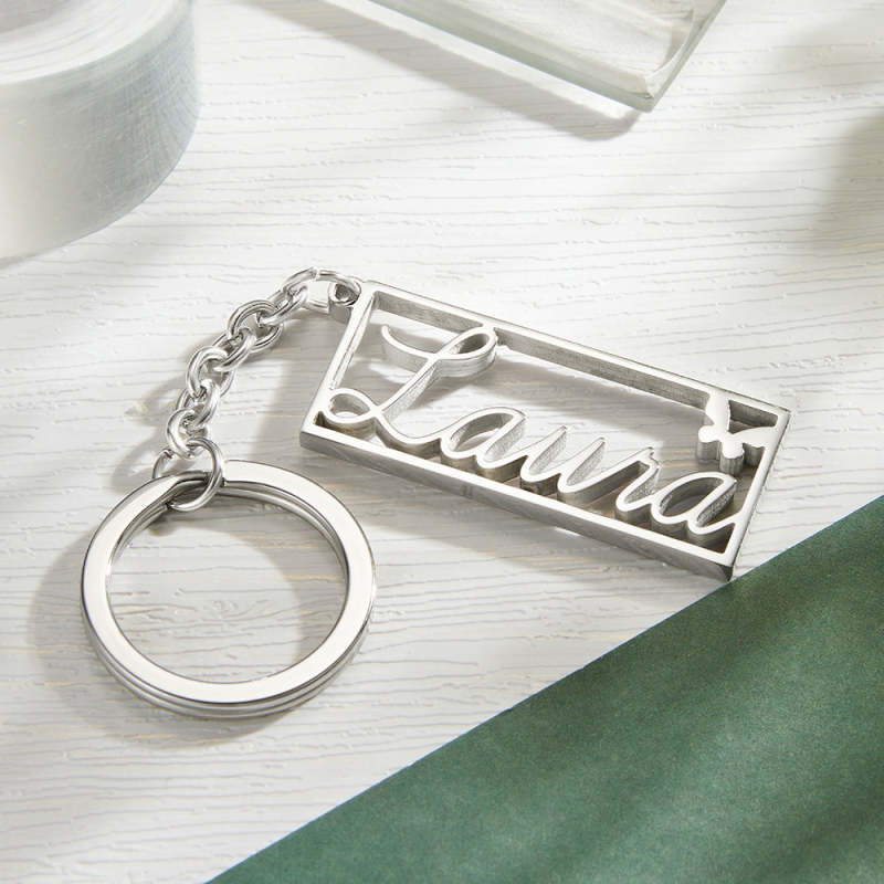 Nom Personnalisé Rectangle Bordure Porte-clés Texte Personnalisé Porte-clés En Acier Inoxydable Cadeaux Créatifs Pour Lui