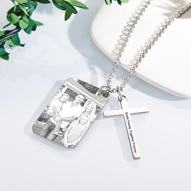 Calendrier Photo Personnalisé Gravé Croix En Acier Inoxydable Collier Pendentif Message Personnalisé