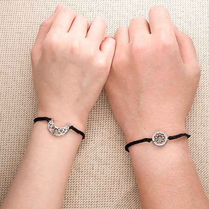 Bracelet De Projection De Photo Personnalisé Bracelet De Corde Tressée Soleil Et Lune Pour Les Couples