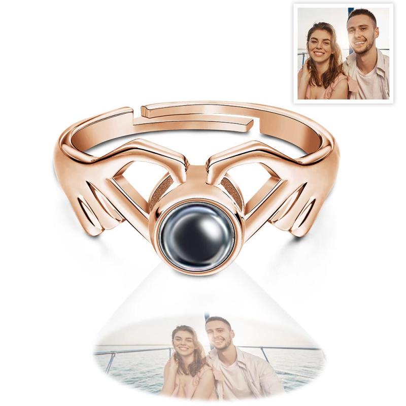 Les Doigts D'anneau De Projection De Photo Personnalisés Combinent L'anneau De Coeur Pour Elle