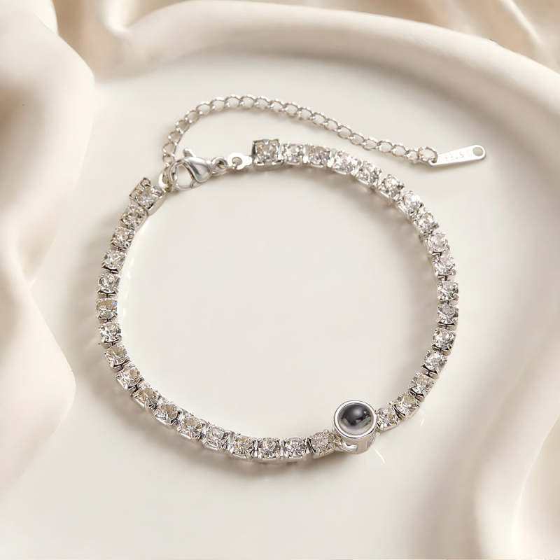 Bracelet De Tennis À Projection Personnalisé, Cadeau Simple En Diamant Pour Femmes