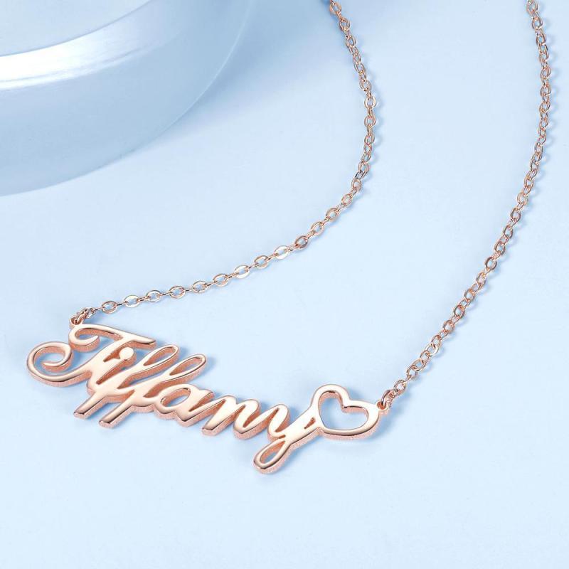 Collier Prénom Personnalisé avec Petit Coeur, Cadeaux pour Elle Argent Plaqué Platine