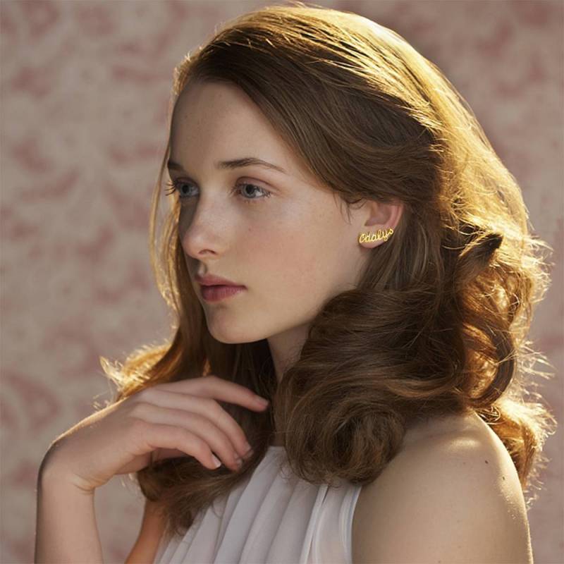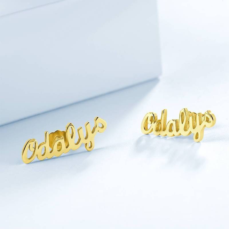 Boucle d'Oreilles Pr¨¦nom Personnalis¨¦, Pr¨¦nom Studs Plaqu¨¦ en Or 14K