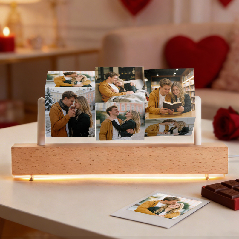 Cubes Photo En Bois Personnalisés Sur Support, Blocs Photo Personnalisés, Collage Avec Base Lumineuse Led En Option, Trois Cubes Photo En Bois À Bascule