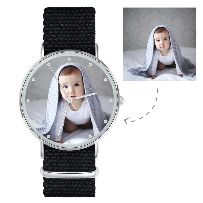 Montre gravée personnalisée, personnalisez votre propre montre avec photo et bracelet noir