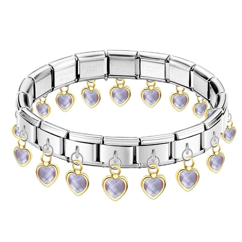 Bracelet À Breloques Italien Vintage En Forme De Cœur Violet