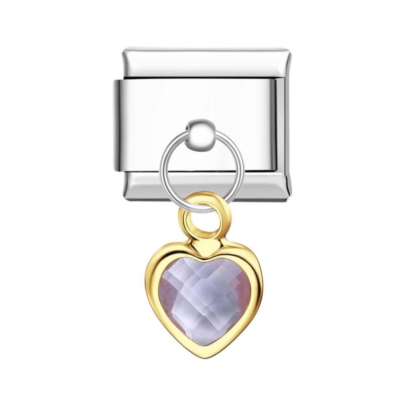 Pendentif Coeur Violet Charm Italien Pour Bracelets À Charms Italiens Lien Composable