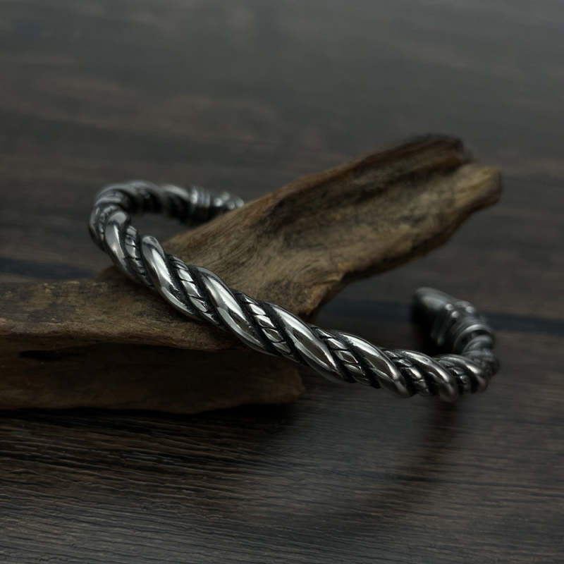 Bracelet Rétro Torsadé Pour Hommes, Bijoux À Tête D'aigle Ouverte