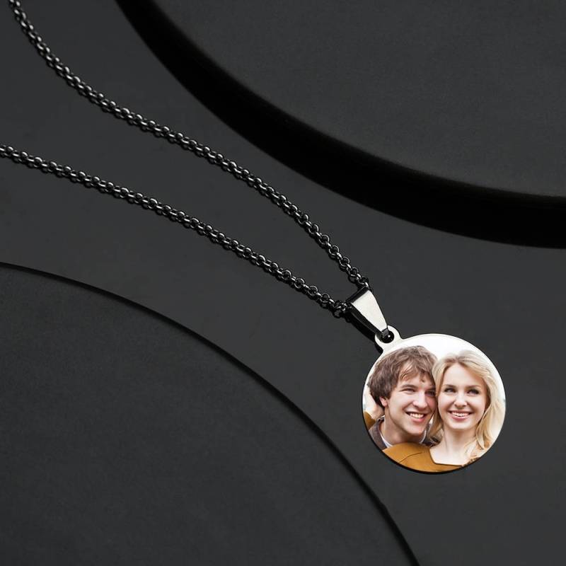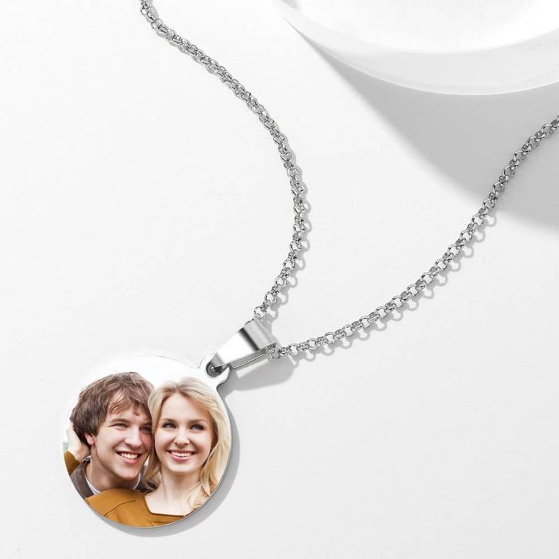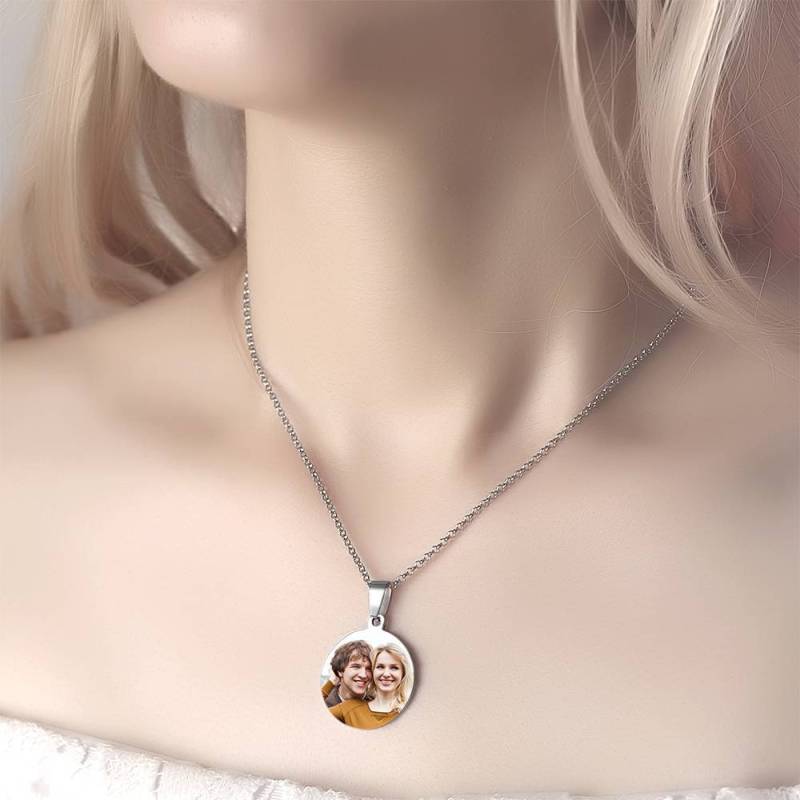 Collier Photo Tag Rond Avec Gravure En Acier Inoxydable
