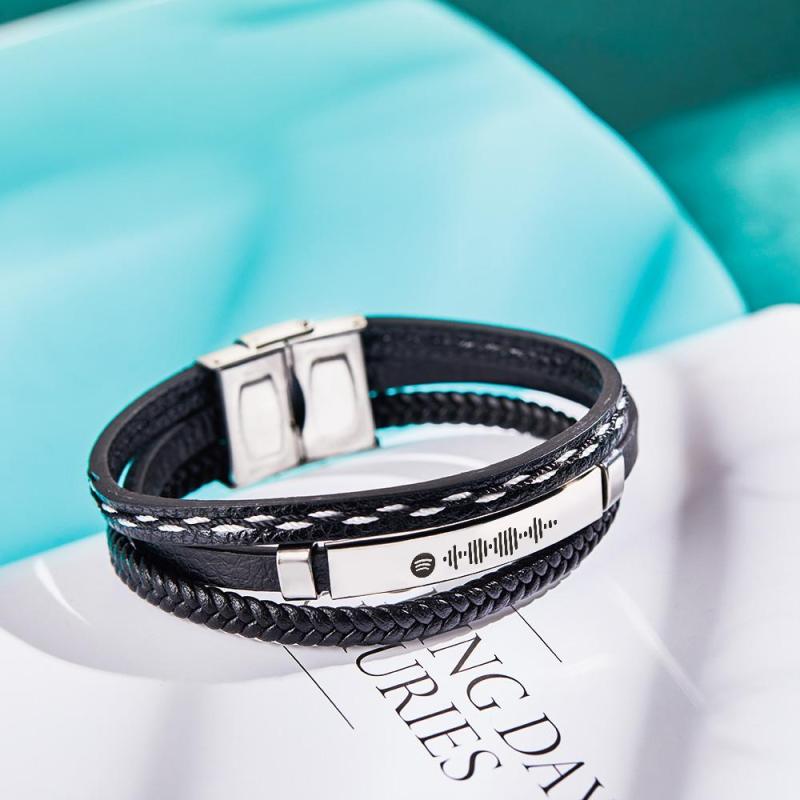 Bracelet Scannable Spotify Code Bracelet En Cuir Multicouche Personnalisé Pour Homme