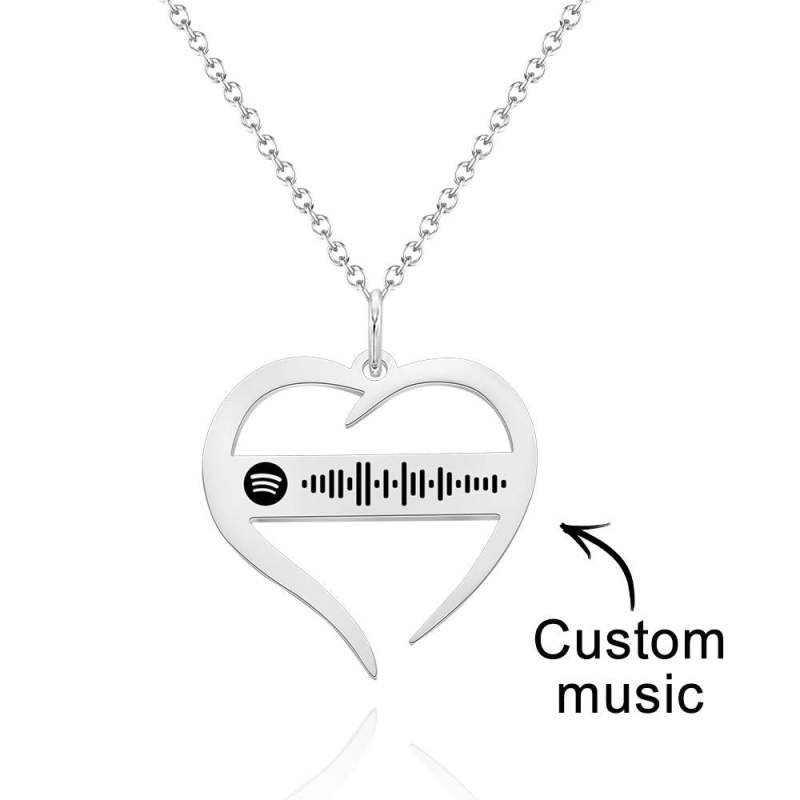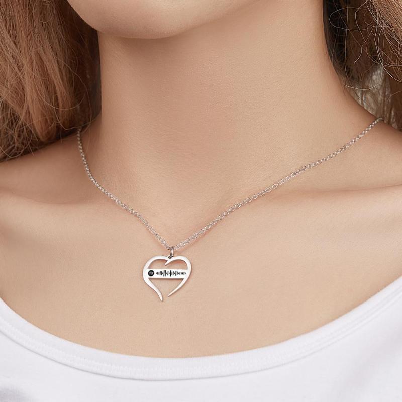Code Spotify Scannable Collier Creux en Forme de Coeur Collier Cadeaux pour Petite Amie
