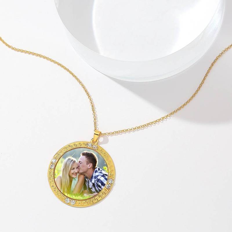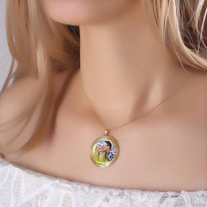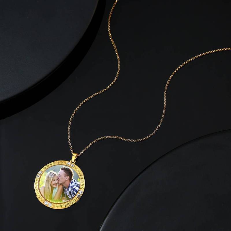 Collier Photo Tag Coeur Avec Gravure En Argent Plaqué Or 14K