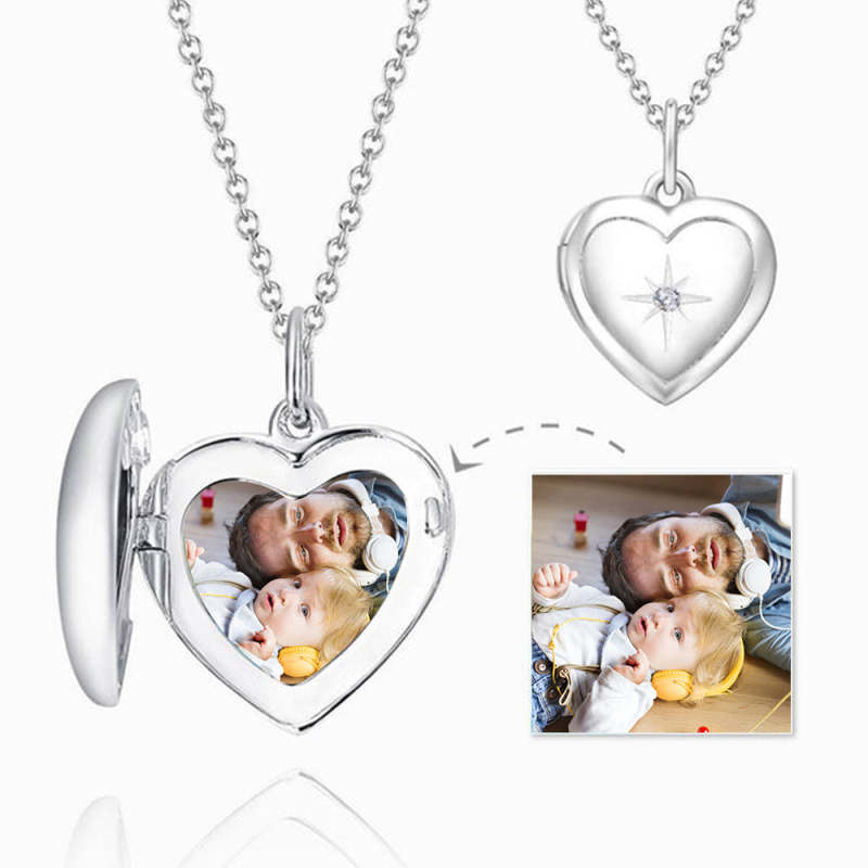 Collier Médaillon Photo Impression Étoile Plaqué Platine Cadeau Pour Papa