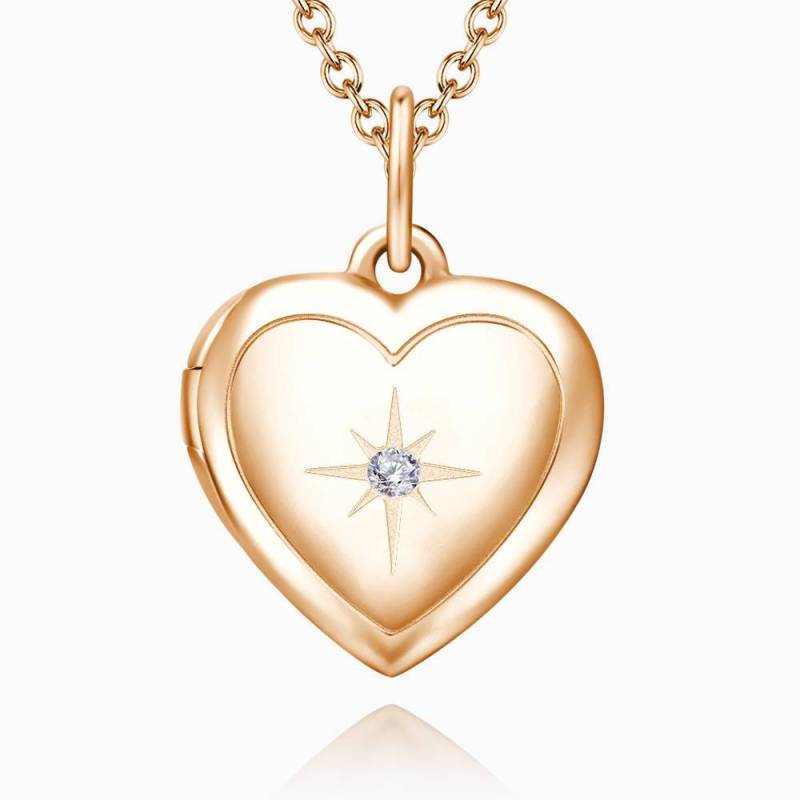 Collier Photo Médaillon Coeur Impression D'Étoiles Plaqué Or Rose