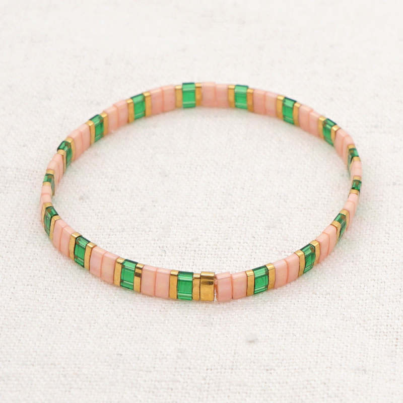 Bracelet De Perles Tila Vert Et Rose, Bracelets À La Mode Vintage, Cadeau