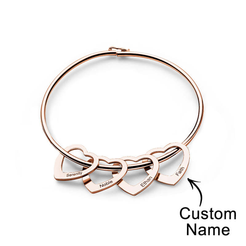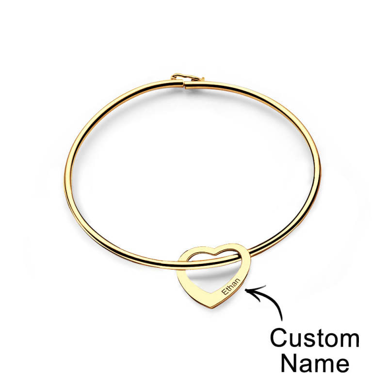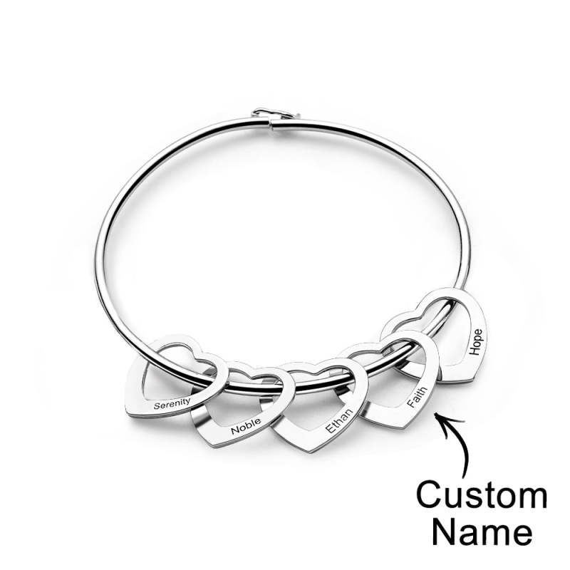 Bracelet Jonc À Graver Tendance Avec Pendentifs En Forme De Cœur, Cadeau