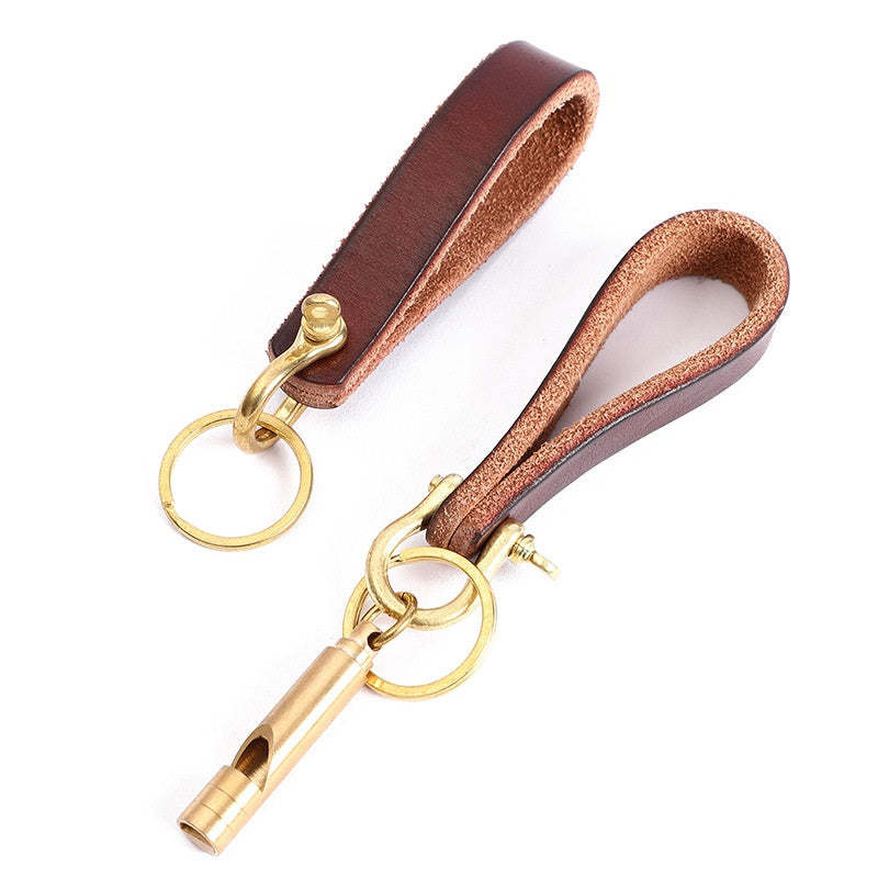 Porte-clés de Voiture en Cuir Vintage Avec Cadeau de Sifflet de Survie pour Homme