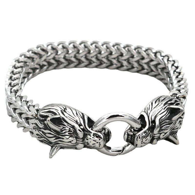 Bracelet Tête De Loup Hip Hop Viking Chain Bracelet Dominateur Pour Homme