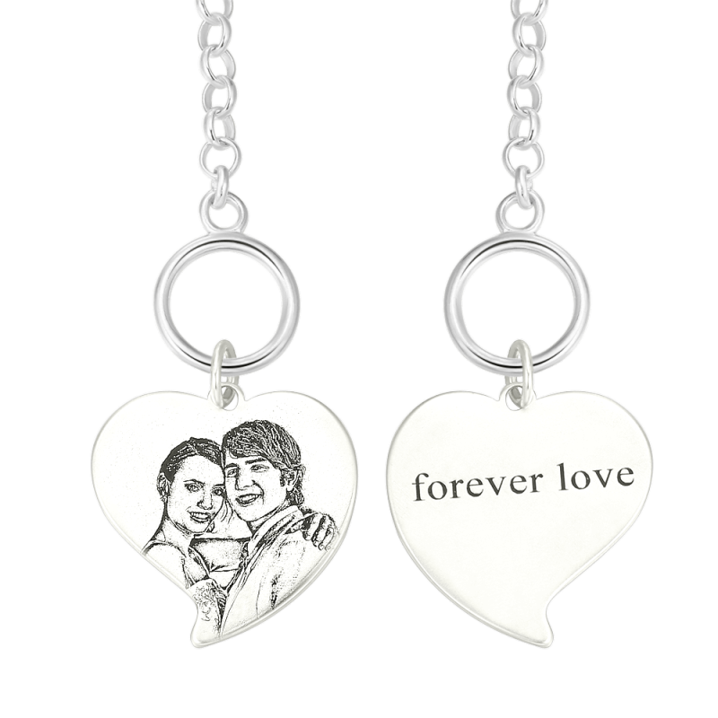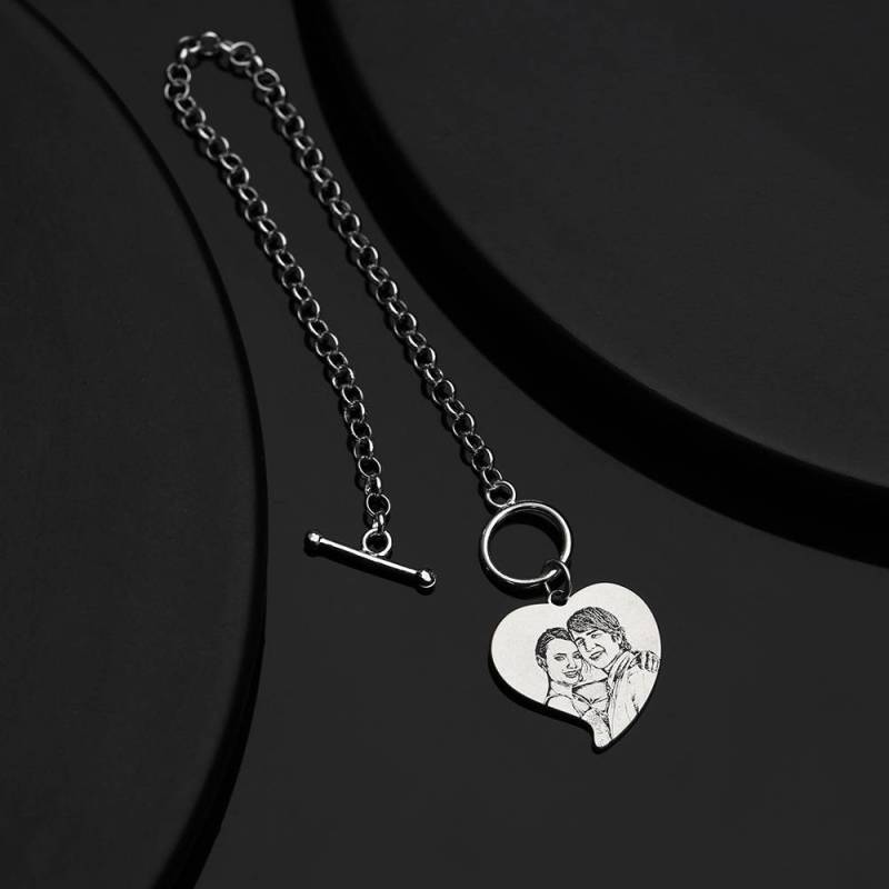 Femme Bracelet Tag Photo Gravé Coeur Avec Gravure En Argent
