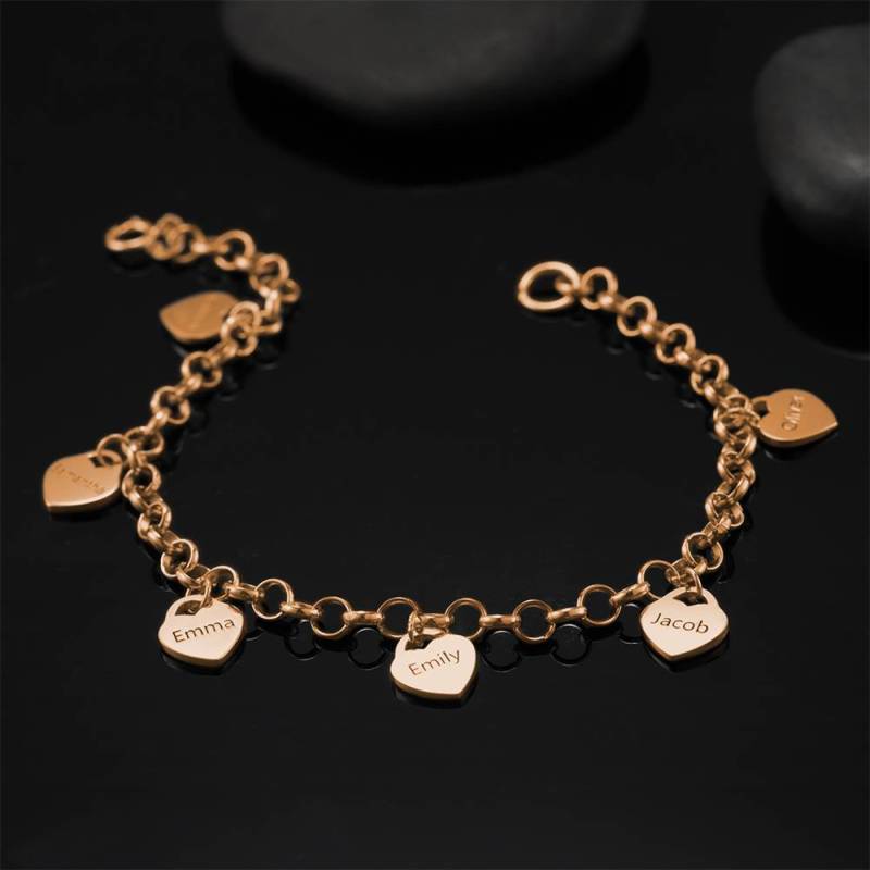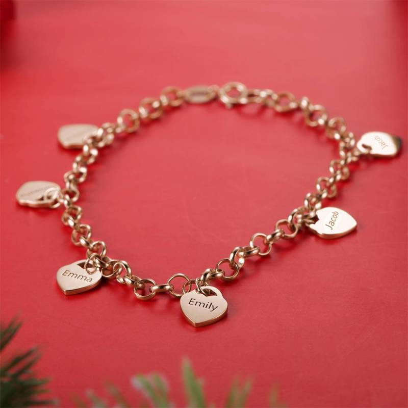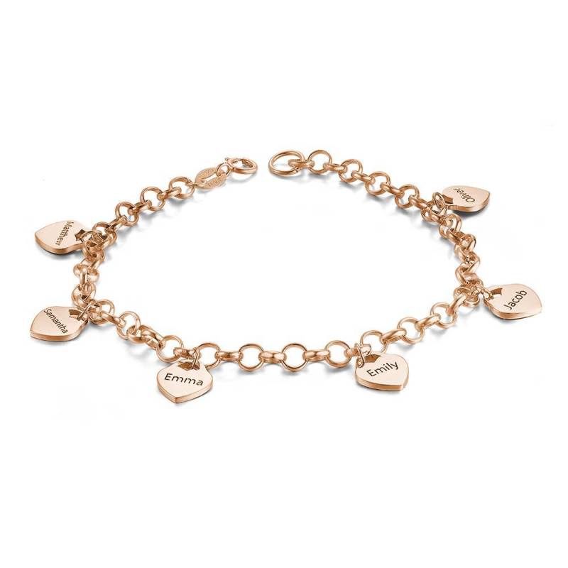 Bracelet Gravé avec Coeur Six Noms Plaqué Or Rose