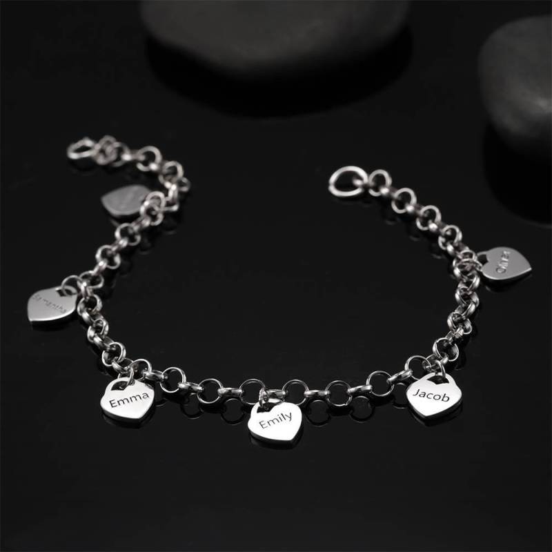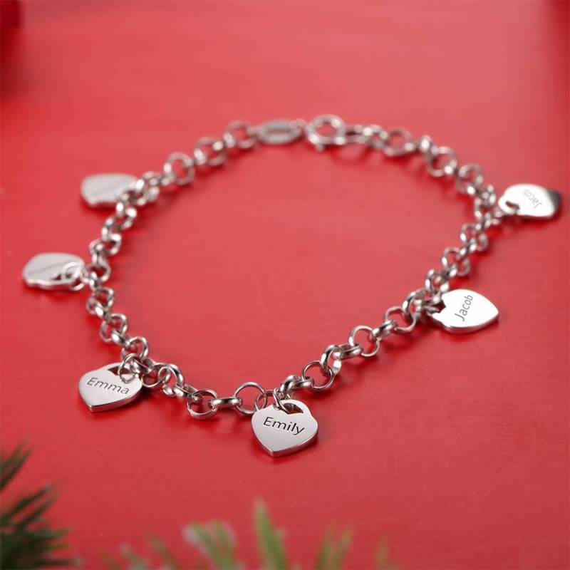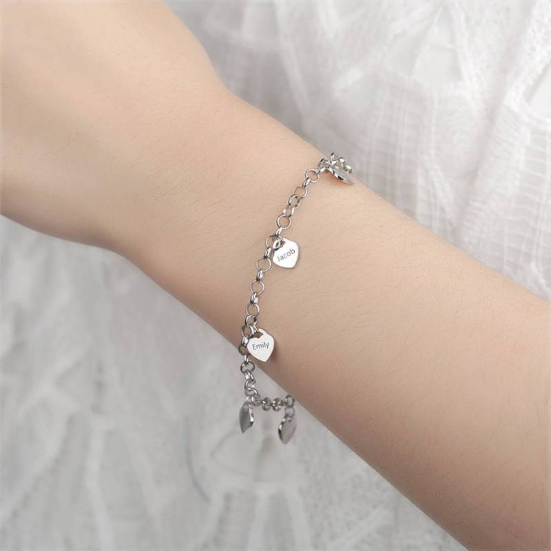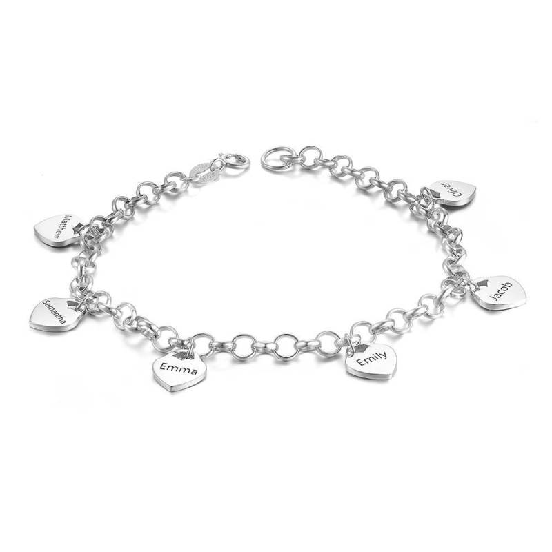 Bracelet Gravé avec Coeur Six Noms Cadeau de Famille Argent