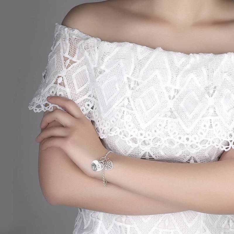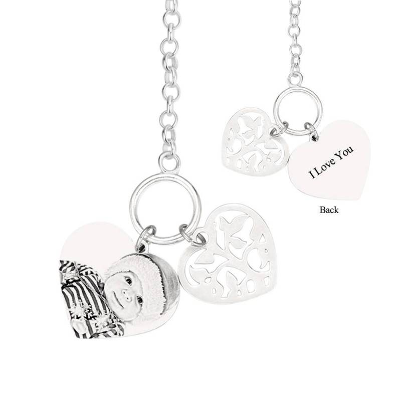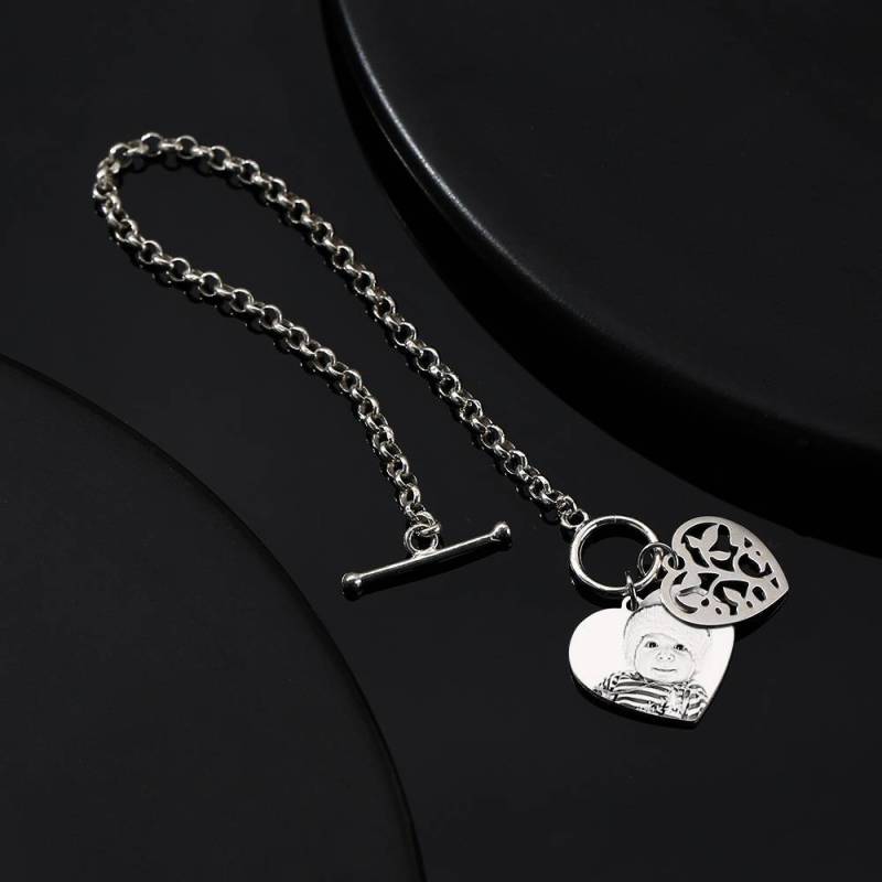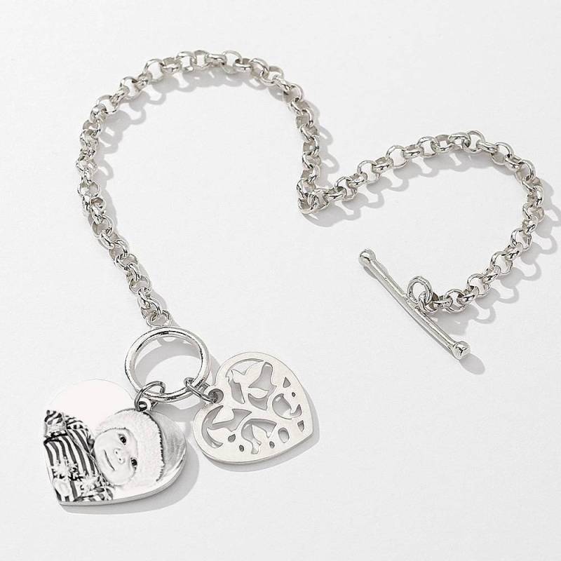 Bracelet Femme Photo Gravée Tag Coeur Avec Gravure En Argent