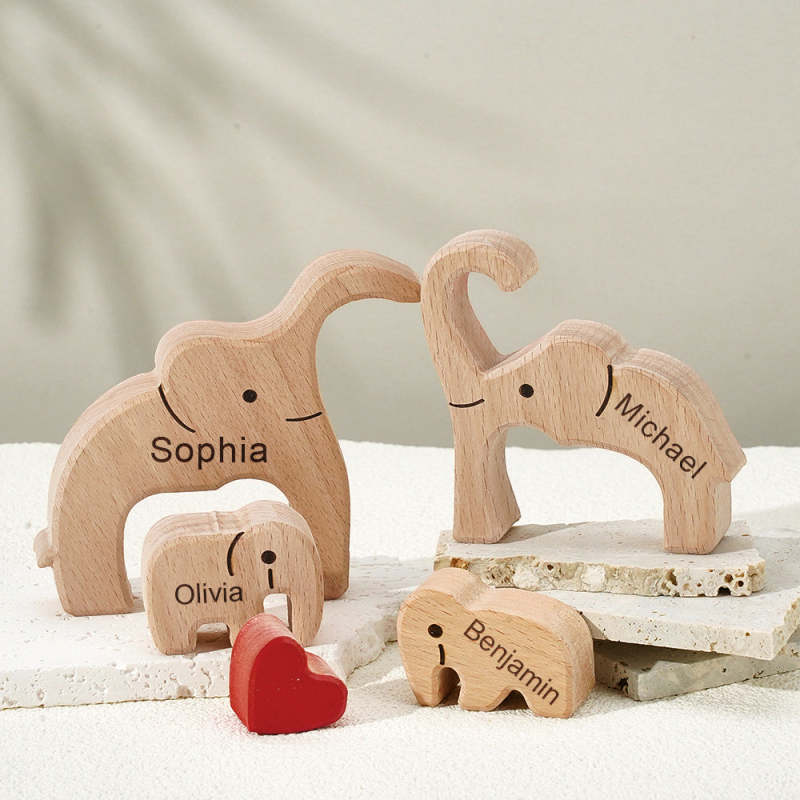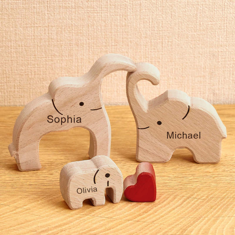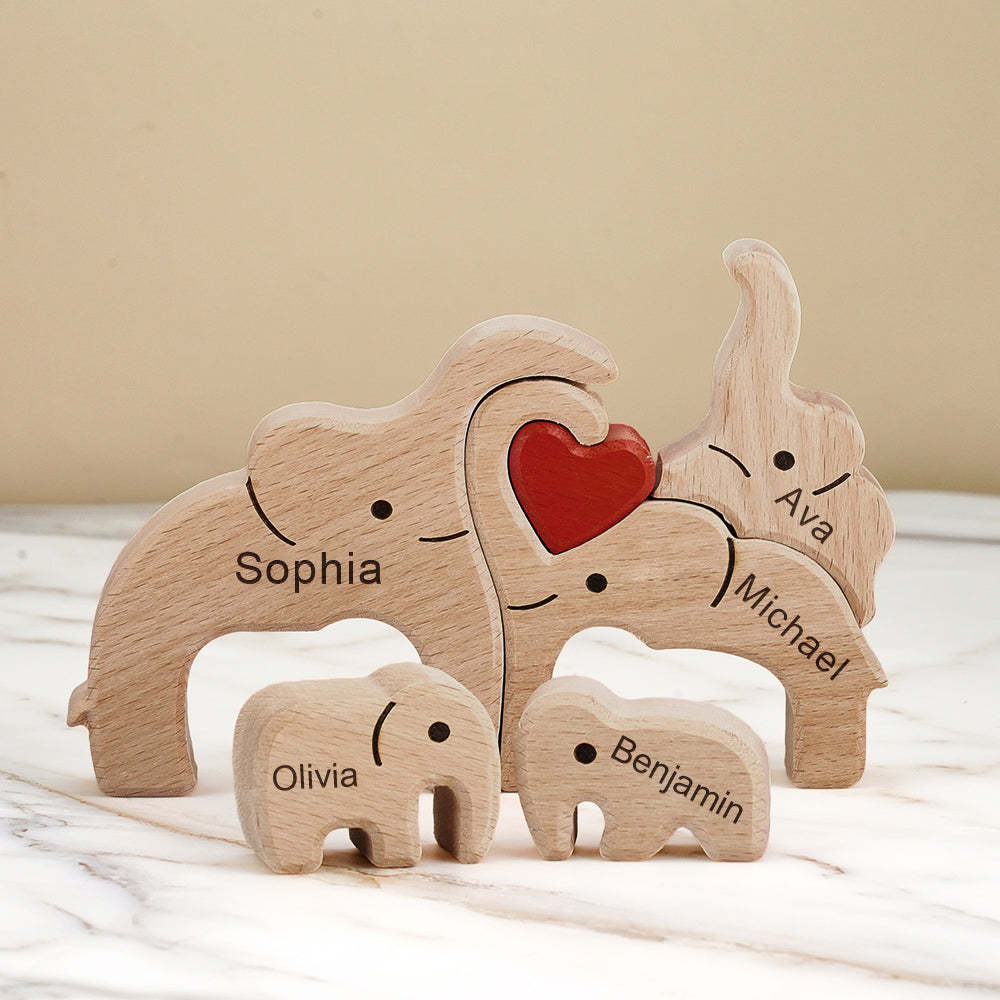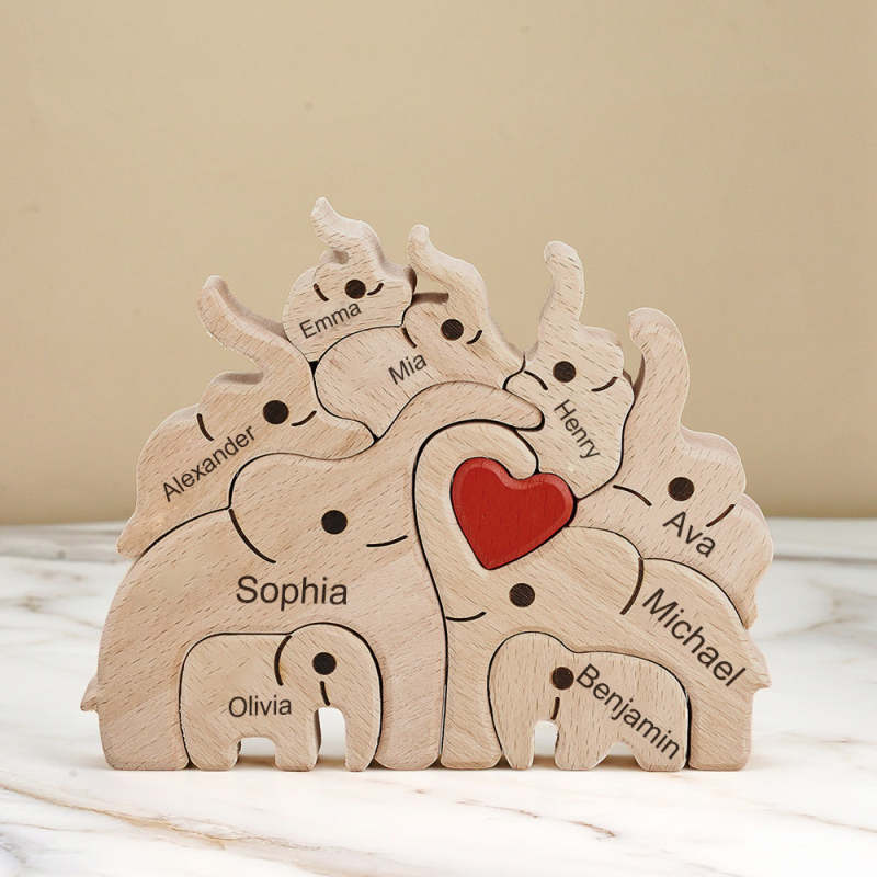 Puzzle Familial En Bois Avec Noms D'éléphant, Décoration De Maison, Cadeaux De Réchauffement De La Maison